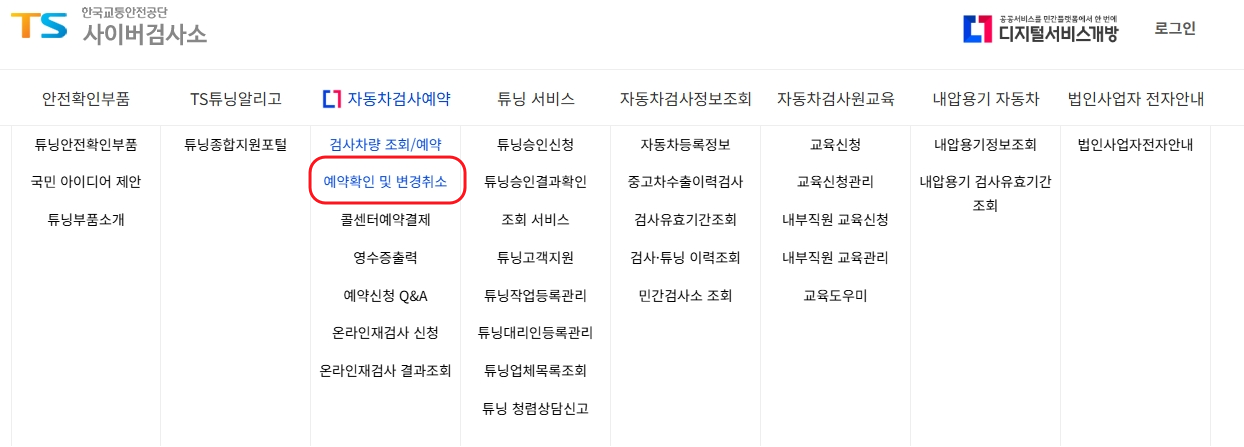 자동차검사 예약, 변경, 조회 요약